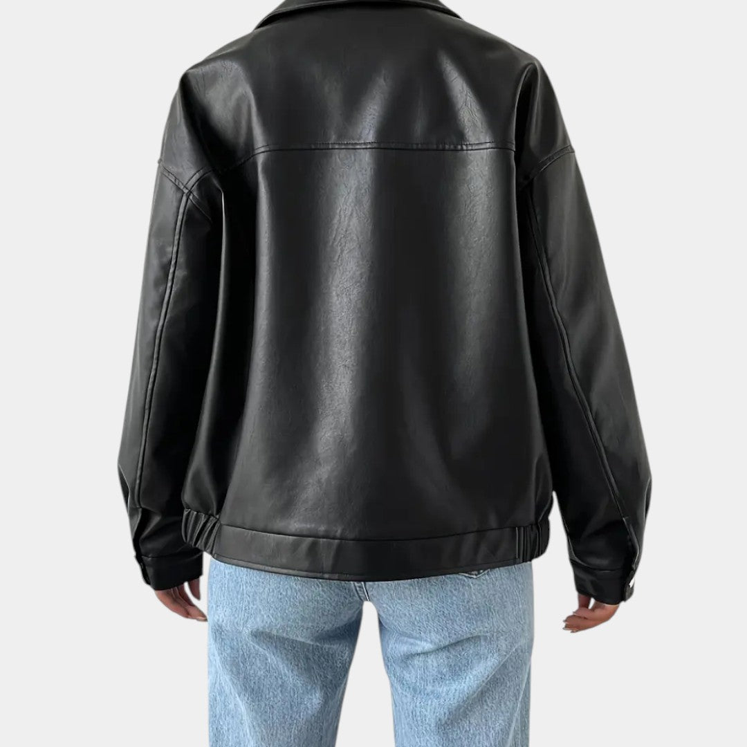 Minimalistická bunda z ekokože s moderným vzhľadom
